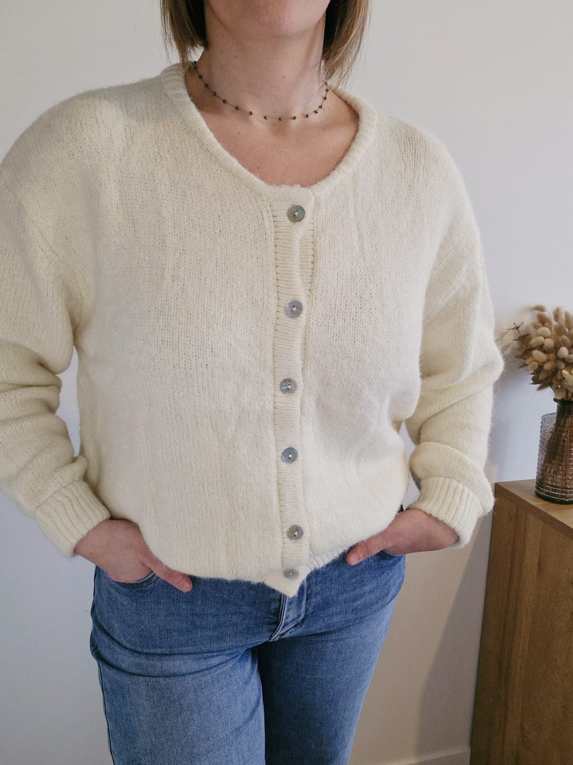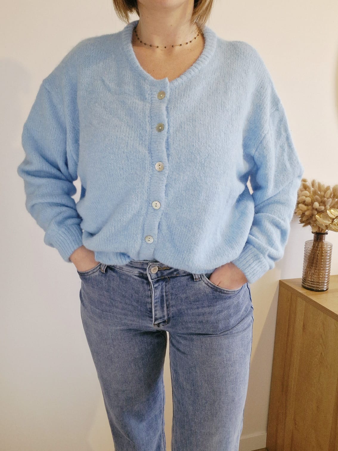 Apportez une dose de douceur et de chaleur à votre quotidien avec ce gilet intemporel. Sa maille duveteuse et sa coupe décontractée en font la pièce " cocooning" par excellence, sans sacrifier l'élégance.