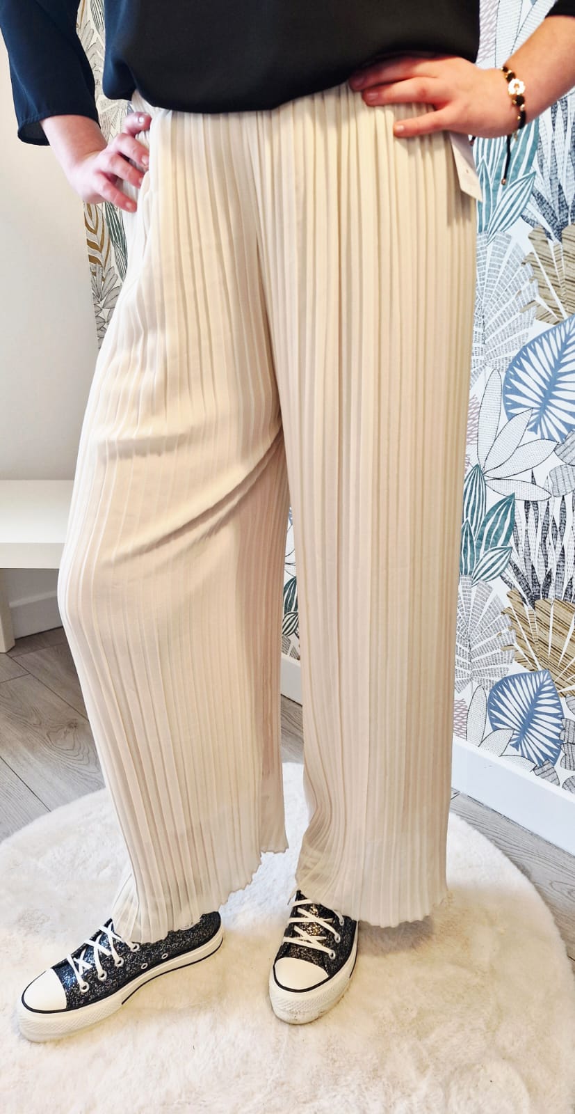 - Type : Pantalon fluide plissé avec doublure jusqu'en bas